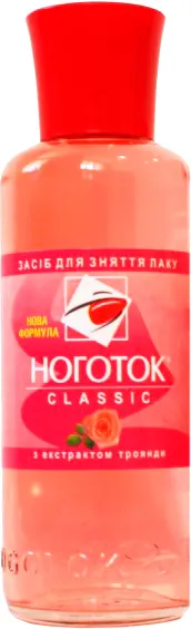 Dizolvantul de lac de unghii Nogotok seria Classic cu extract de trandafir este o linie clasică de dizolvare a lacului de unghii, disponibilă în sticle de sticlă. O soluție de îndepărtare a lacului de unghii ușoară și de bună calitate. Extractul de trandafir conținut conține proprietăți antimicrobiene și antiseptice.