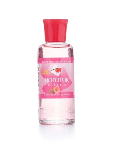 Dizolvantul de lac de unghii Nogotok seria Classic cu extract de trandafir este o linie clasică de dizolvare a lacului de unghii, disponibilă în sticle de sticlă.