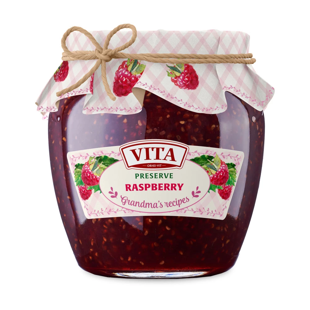 Dulceață de zmeură VITA, cu fructe coapte și aromă intensă, pregătită după rețetă tradițională. Textură bogată, cu semințe fine — gata de savurat pe pâine prăjită, clătite, brioșe, în iaurt sau ca topping pentru deserturi.