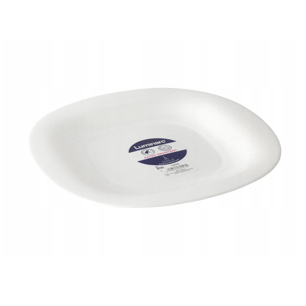 Farfurie pătrată Luminarc Carine White din seria White. Diametru: 26 cm. Material: sticlă călită, rezistentă la impact, capabilă să reziste la schimbări rapide de temperatură. Farfuria nu are nevoie de o îngrijire specială - poate fi spălată în mașina de spălat vase și poate fi folosită în cuptorul cu microunde.