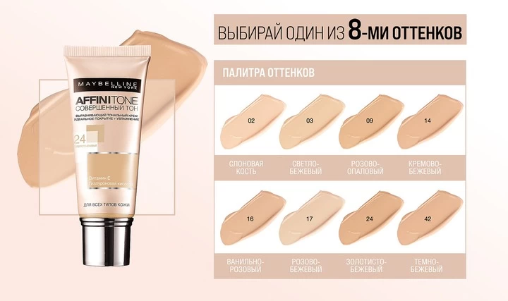 - Fond de ten Affitone, 09 Opal Cream, 30ml, Maybelline