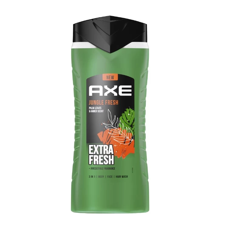 Gel de duș pentru bărbați AX Jungle Fresh. Parfumul sofisticat valorifică ce e mai bun din natură, combinând mirosul irezistibil al frunzelor de palmier și al ambrei gri. AXE Jungle Fresh te va ghida prin fiecare aventură zilnică!