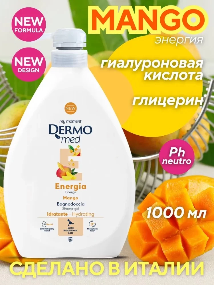 Dermomed gel de duș cu dozator 1000 ml - îngrijire italiană cu un parfum delicat de mango!