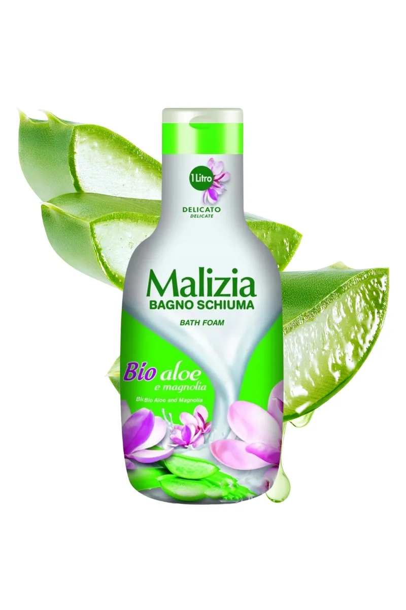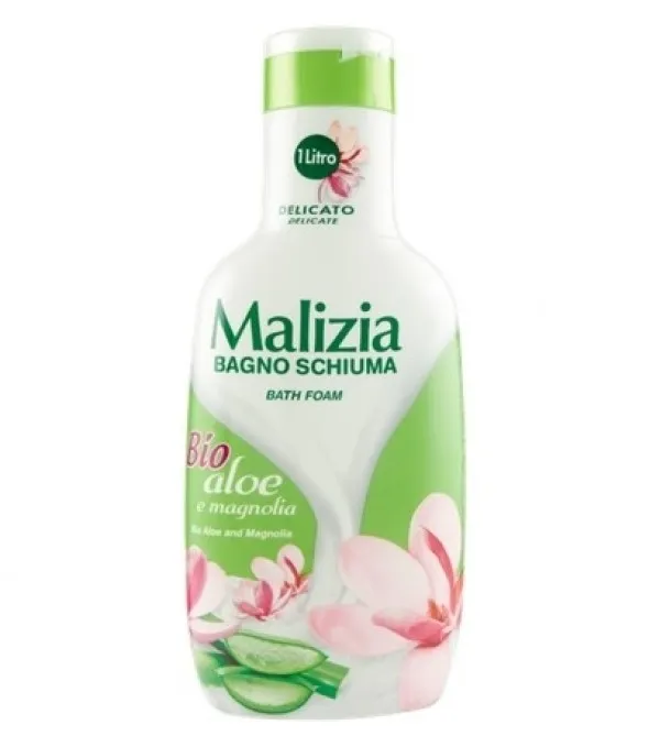 Lasa-te cucerit de mangaierea delicata si hidratanta a spumei de baie Malizia Bio Aloe si Magnolie.