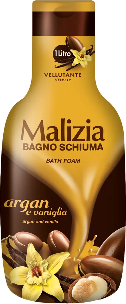 Spuma moale Malizia cu ulei de argan și vanilie curăță delicat și înmoaie pielea.