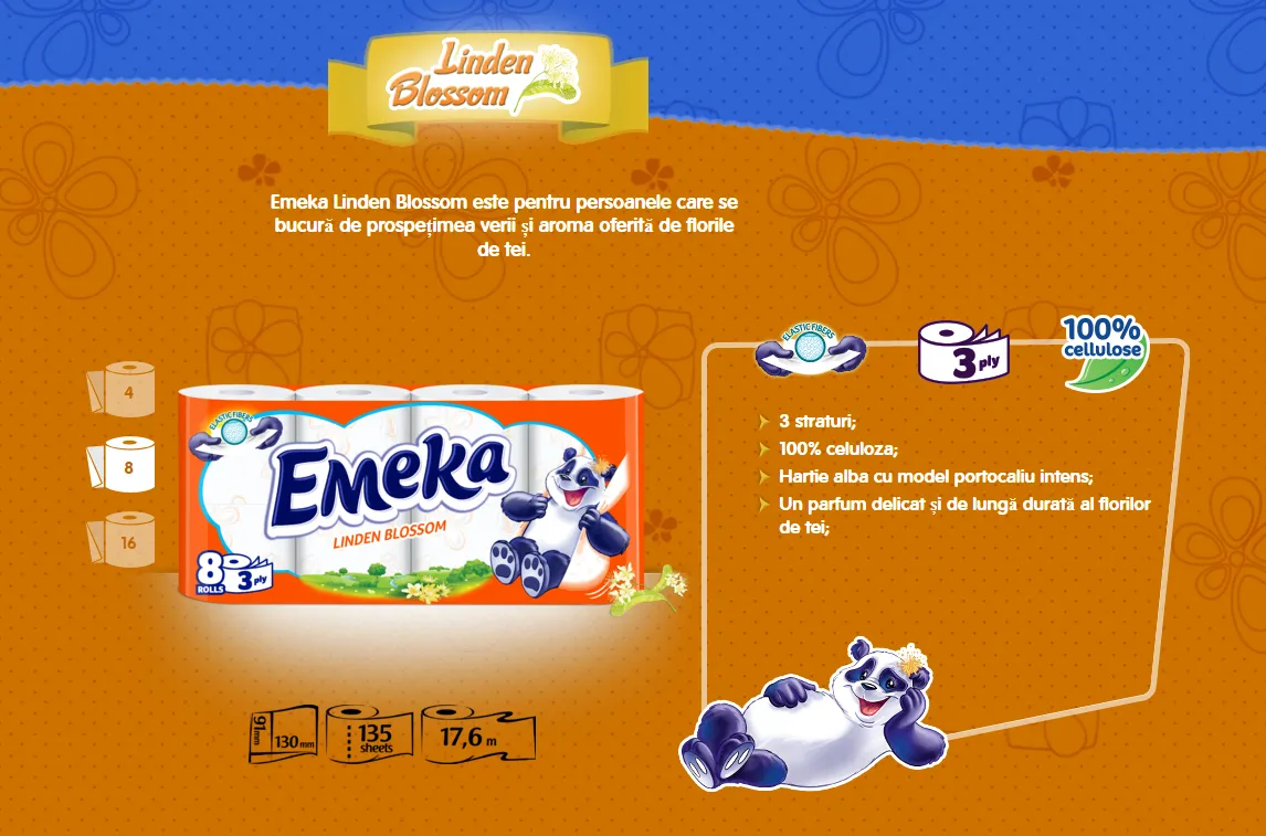 Emeka este o hartie igienica de inalta calitate, cunoscuta pentru delicatetea sa.