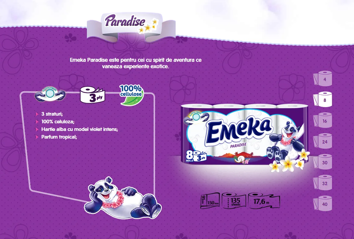 - Emeka Hartie igienica, 3 straturi, 8 role Paradise
