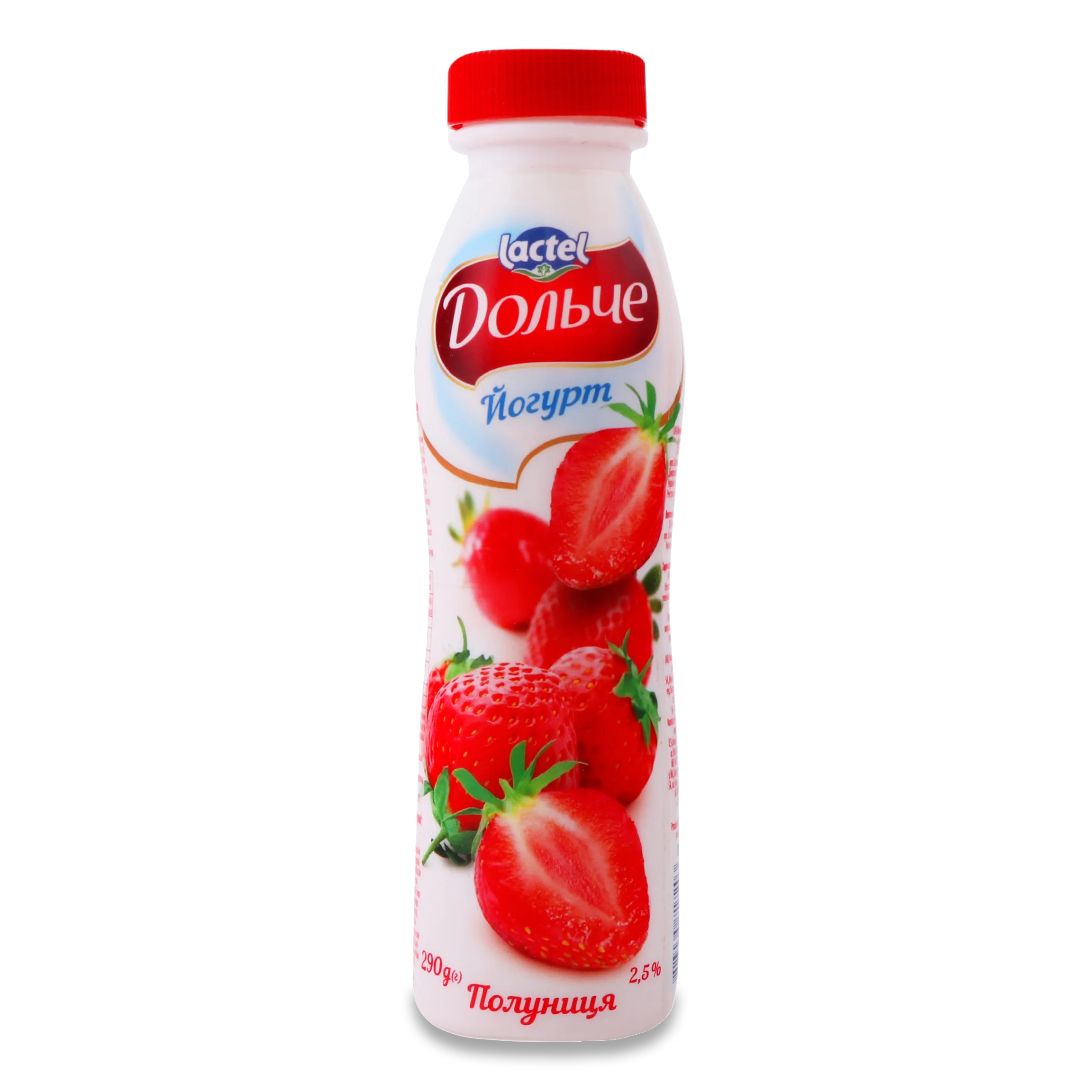 Iaurtul de băut apetisant de la marca Dolce este un produs delicios de delicat, obținut din lapte natural de cea mai bună calitate. Vă va oferi o adevărată plăcere datorită gustului și aromei sale minunate de căpșuni. Iaurtul "Dolce" vă va potoli rapid setea și foamea în cel mai necesar moment. Conținutul de grăsime al produsului este de 2,5%. Este prezentat într-o sticlă de plastic convenabilă.