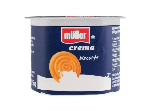 Muller Crema Biscuiti incanta cu gustul sau dulce si placut, unul dintre cele mai apreciate gusturi ale copilariei.