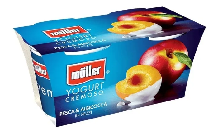 - Muller Pezzi iaurt cu bucati de piersici si caise 2*125g