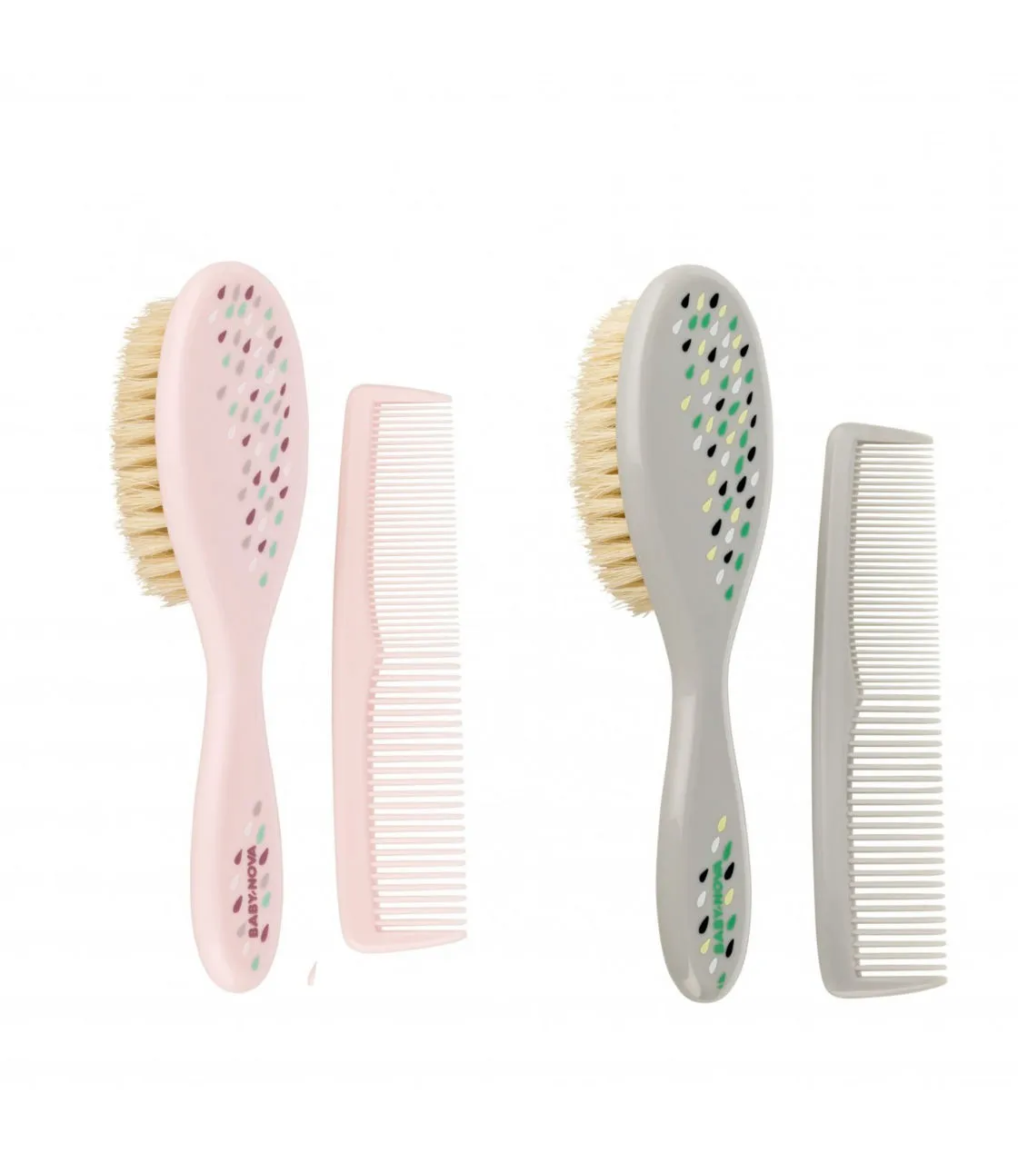 - Baby Nova Set perie și pieptene cu peri naturali (roz sau gri), 1 buc.