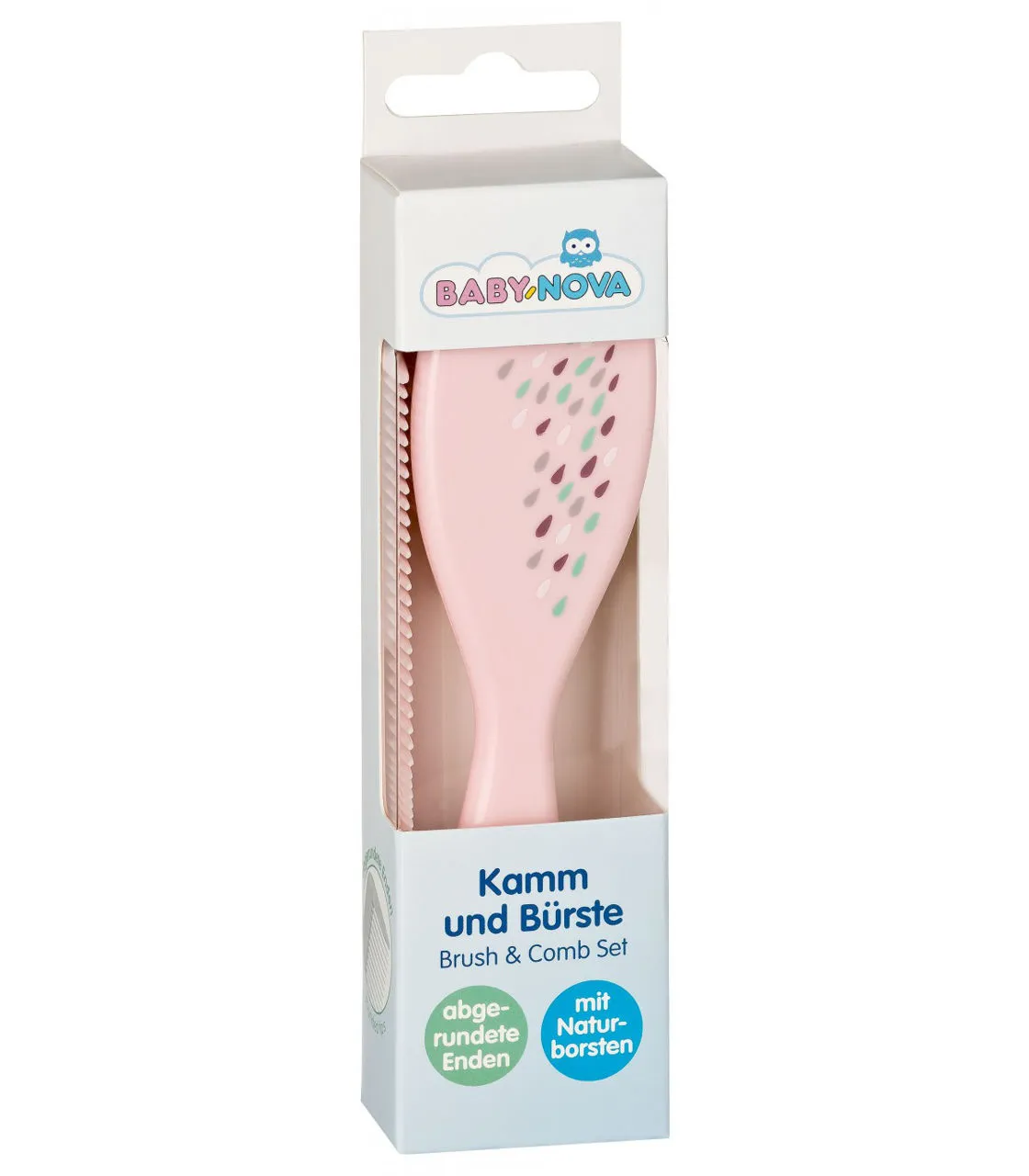 Setul de perii și piepteni cu peri moi ajută la menținerea unui scalp curat și sănătos și la îngrijirea părului bebelușului. Peria este împodobită cu un design drăguț. Perii naturali nu vor irita scalpul bebelușului. BABY-NOVA este în mod tradițional o calitate germană excelentă pentru produsele pentru bebeluși. Fiabilă și sigură - acestea sunt principalele componente ale îngrijirii bebelușului dumneavoastră.
