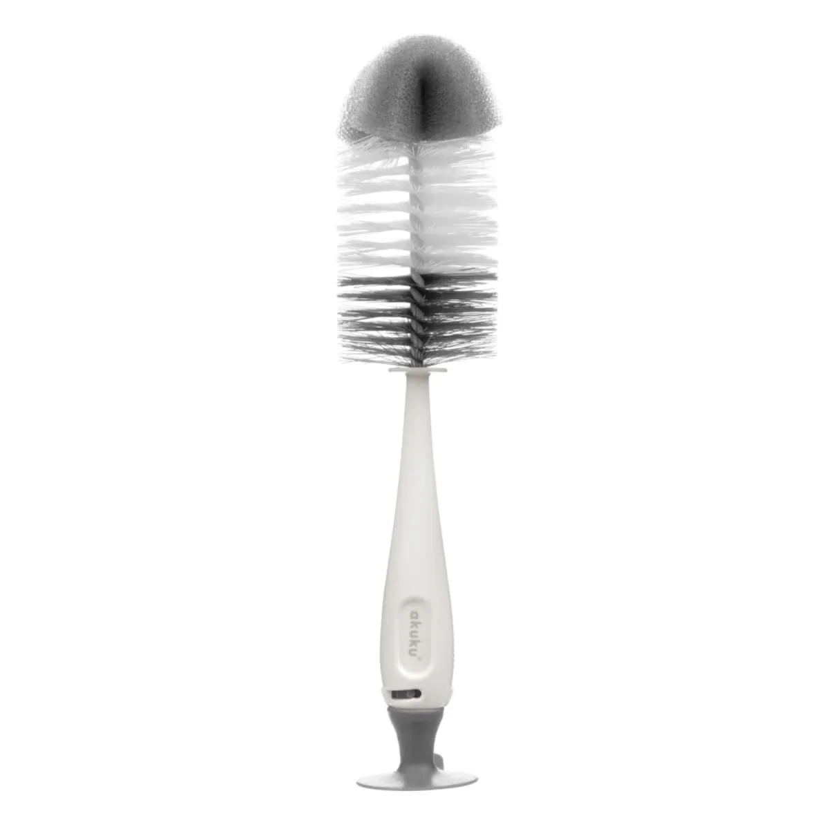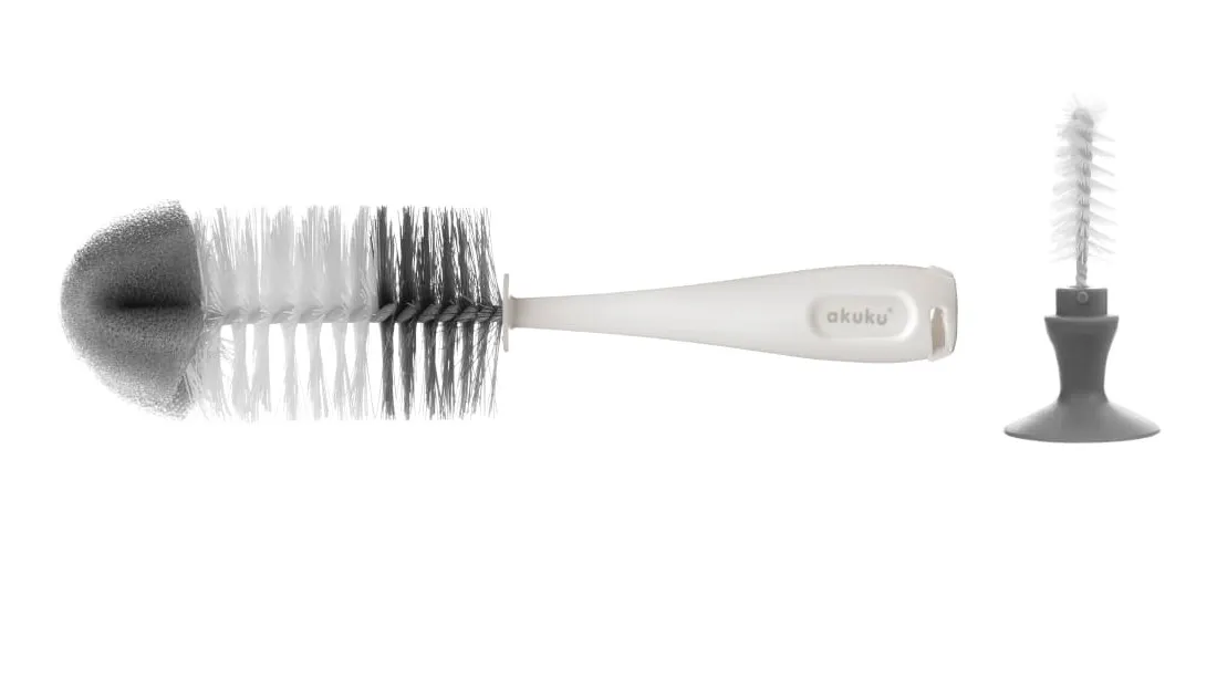 Peria pentru biberon se termină cu un vârf de burete moale care se adaptează la forma biberonului. Mânerul periei pentru biberon are o perie mică pentru curățarea mameloanelor.