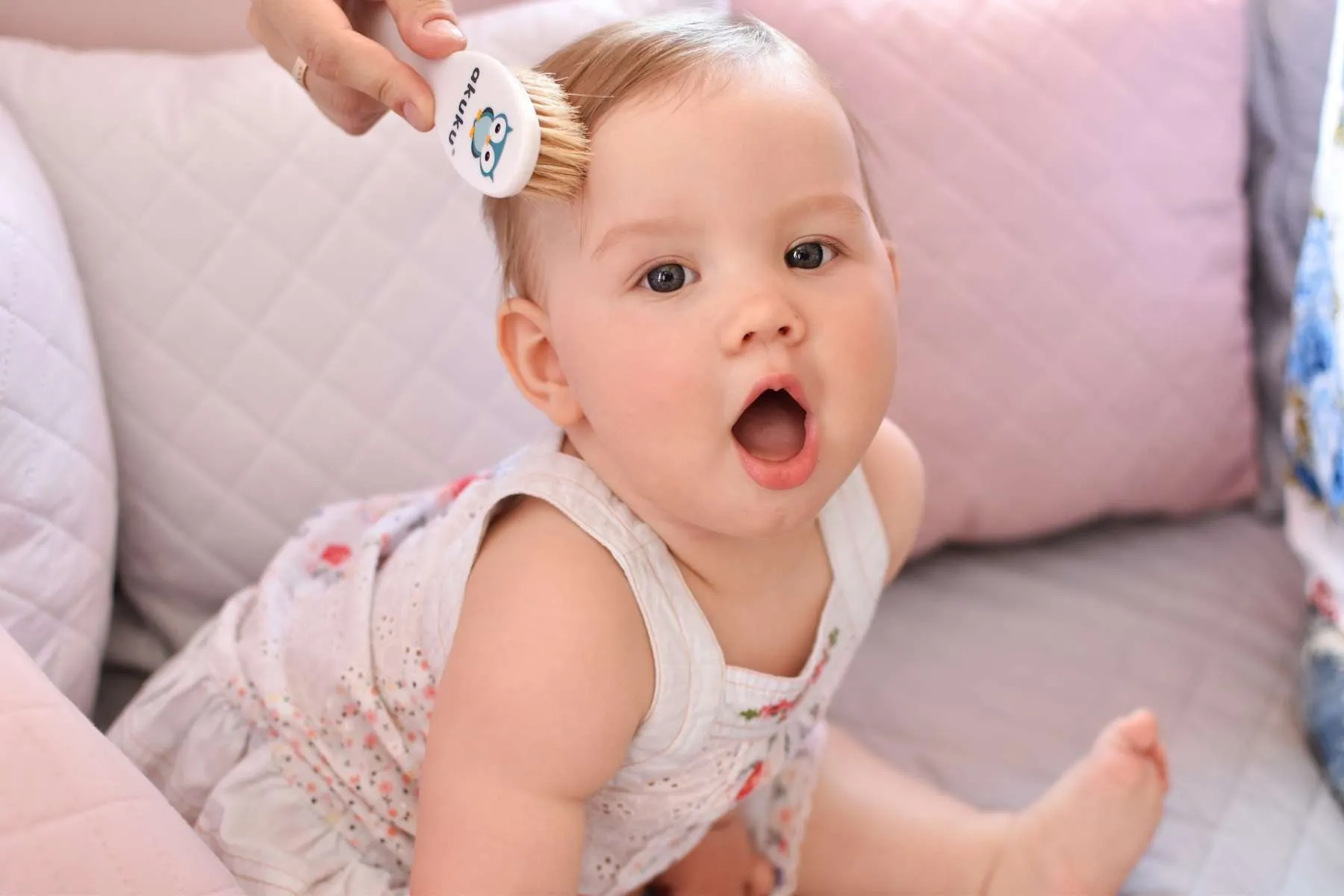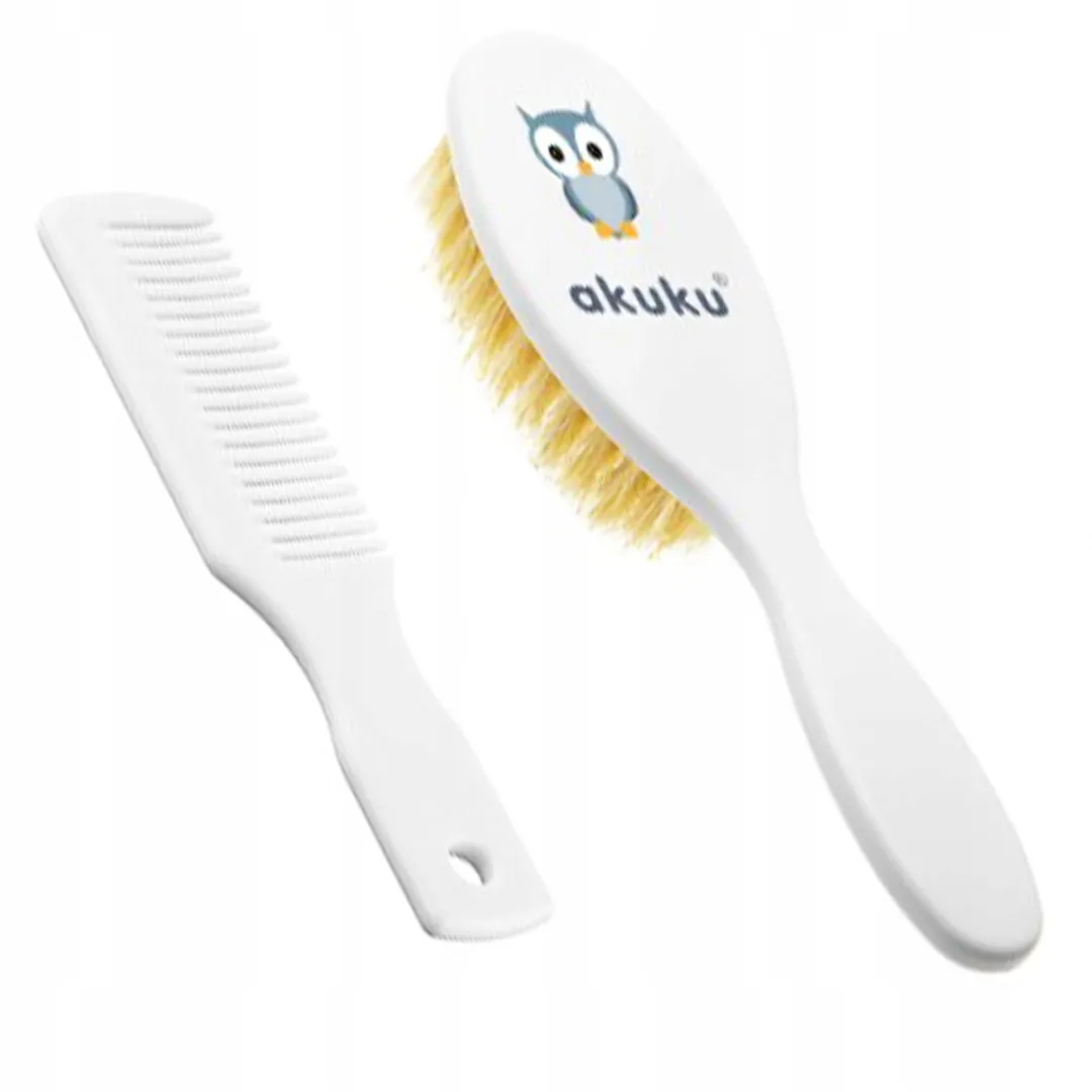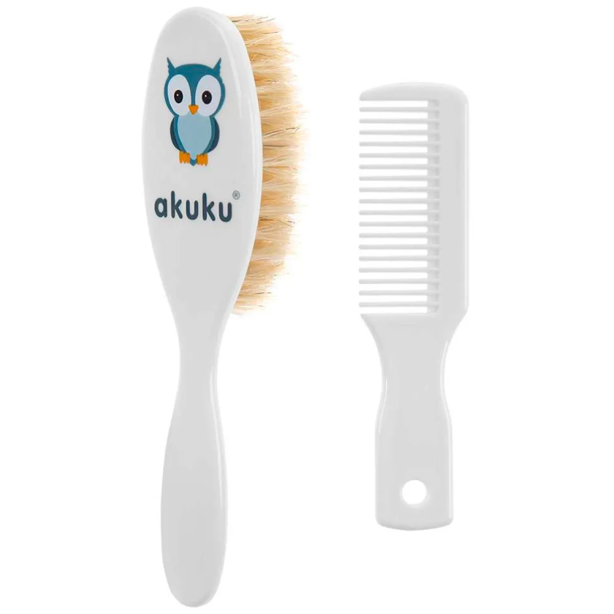 Perie sigură și delicată pentru periajul părului bebelușului, realizată din peri naturali, completată cu pieptene. Periile moi sunt ideale pentru îngrijirea părului delicat al bebelușului și, datorită proprietăților lor antistatice, nu îl electrizează. Pieptenele cu capetele rotunjite protejează pielea delicată a bebelușului.