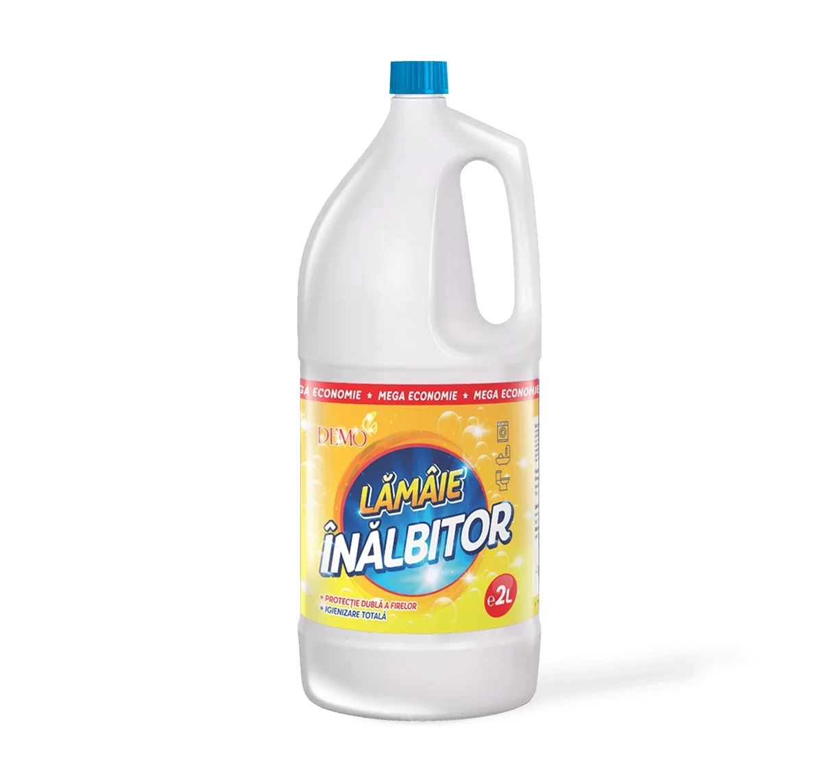 Inalbitor cu aromatizator de lamaie. Potrivit pentru spalarea manuala si la masina automata a rufelor din in si bumbac, pentru dezinfectarea si curatarea chiuvetelor, cazilor de baie,instalatiilor sanitare, faiantei, etc.