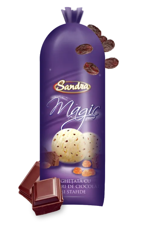 - Magic Plombir Stafide si Picaturi de ciocolata 0.5kg/850ml