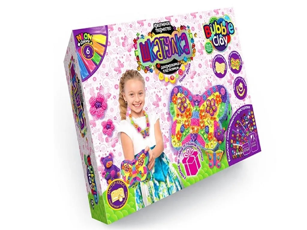 Kit de creație creativă pentru coșciug din lut cu bule. Împreună cu copilul dumneavoastră, puteți crea un cadou neobișnuit, foarte luminos - o cutie pentru accesorii mici și bijuterii pentru tinerii pasionați de modă.