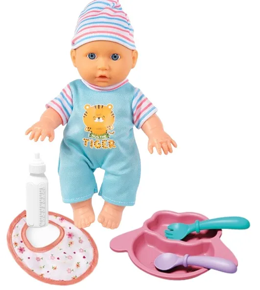 Joaca cu păpușa va deveni o distracție preferată, care va contribui, de asemenea, la dezvoltarea imaginației și va învăța să aibă grijă și responsabilitate. Păpușa muzicală în salopetă albastră cu tigru vine complet cu accesorii: biberon, bavetă, ustensile.