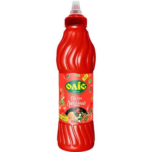 OLIS Ekstra Lahidnyi Ketchup este fabricat într-o sticlă PET convenabilă. Sosul are o aromă plăcută și un gust ușor acrișor. Este fabricat din roșii proaspete, coapte și zemoase. În rețeta sa nu se folosesc coloranți sau arome sintetice. Coriandru, paprika, piper roșu și allspice, cardamom și nucșoară alcătuiesc buchetul de arome al acestui sos.