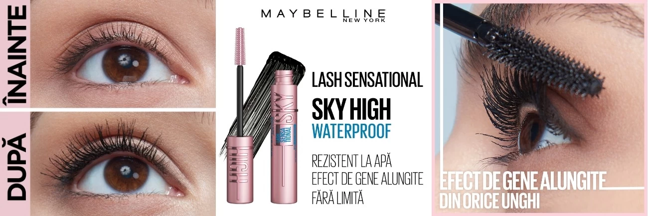 Mascara Lash Sensational Sky High oferă volum complet și lungime nelimitată. Peria exclusivă Flex Tower se îndoaie pentru a da volum și a extinde fiecare geană de la rădăcină până la vârf.