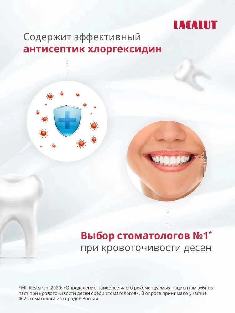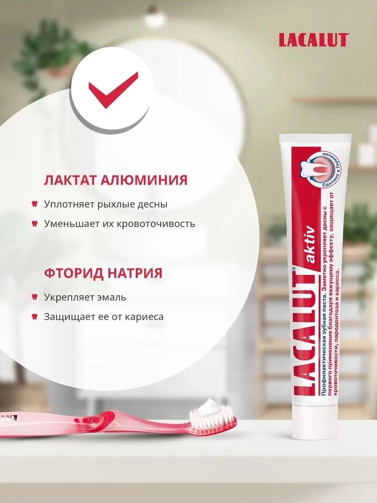 Lakalut White conține fluoruri pentru întărirea smalțului dentar și prevenirea sensibilității dentare și pirofosfați - compuși speciali care previn formarea tartrului. Prezența lactatului de aluminiu în pasta de dinți permite îngrijirea eficientă a gingiilor și rezolvă problema redării albului natural al dinților chiar și în prezența sângerărilor și a inflamațiilor gurii.