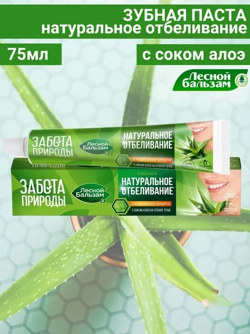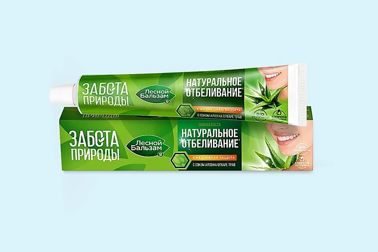 Pasta de dinți Forest Balsam „Natural whitening” cu suc de aloe pe decoct de plante este o bioformulă activă pentru o albire blândă și delicată.