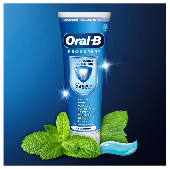 Pasta de dinti Oral-B Pro-Expert Professional Protection este dezvoltata de medicii dentisti, oferind o senzatie de curatare pentru intreaga gura si protectie 24 de ore impotriva placii bacteriene, prin periaj de doua ori pe zi.