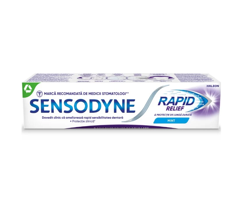Este dovedit clinic faptul ca Sensodyne Rapid Relief amelioreaza sensibilitatea dentara in doar 60 de secunde. Formula sa unica formeaza intr-un mod rapid o bariera deasupra zonelor sensibile ale dintelui. Ofera ameliorare rapida a sensibilitatii dentare si protectie continua a dintilor cu fiecare periaj dentar*. Sensodyne Rapid Relief ajuta totodata la mentinerea albului natural al dintilor si la prevenirea aparitiei petelor.