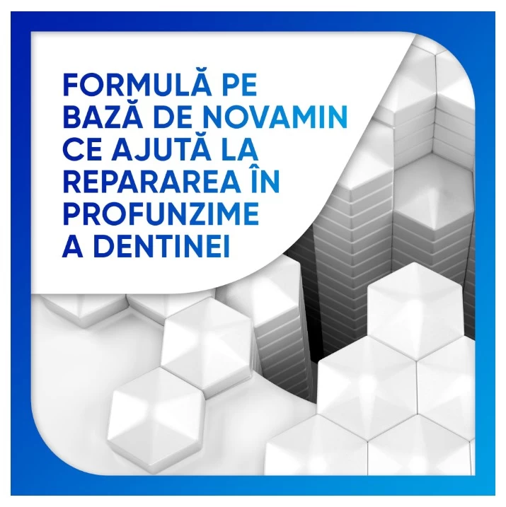 Pasta de dinti Sensodyne Repair & Protect pe baza de NOVAMIN este dovedita clinic ca ajuta la repararea in profunzime a dentinei prin formarea unui strat protector asemanator cu structura naturala a dintelui.