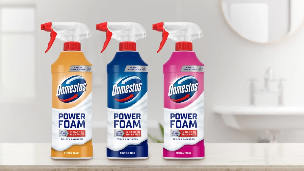 Domestos Power Foam Spray Spuma de curatare cu parfum de Lamaie 435ml este un produs dezinfectant sub forma de spuma pentru curatarea toaletei si baii, care elimina bacteriile si virusurile in locurile cel mai greu accesibile (Elimina bacterii ca E.Coli, S.Aureus, E.Hirae, P. Aeruginosa si virusuri anvelopate ca Vaccinia ATCC VR-1549).