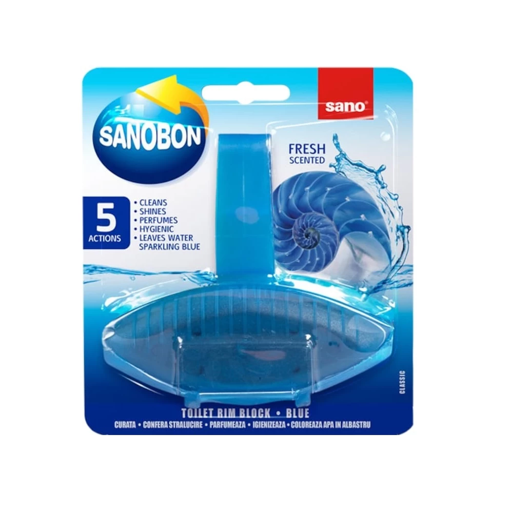 Sano Toilet Block este un produs de curățare și dezinfectare a vasului de toaletă cu diverse parfumuri. Împiedică formarea calcarului și conferă un parfum proaspăt și plăcut. 5 funcții într-un singur produs: curăță, luminează, parfumează aerul, are proprietăți igienice și nuanțează apa.