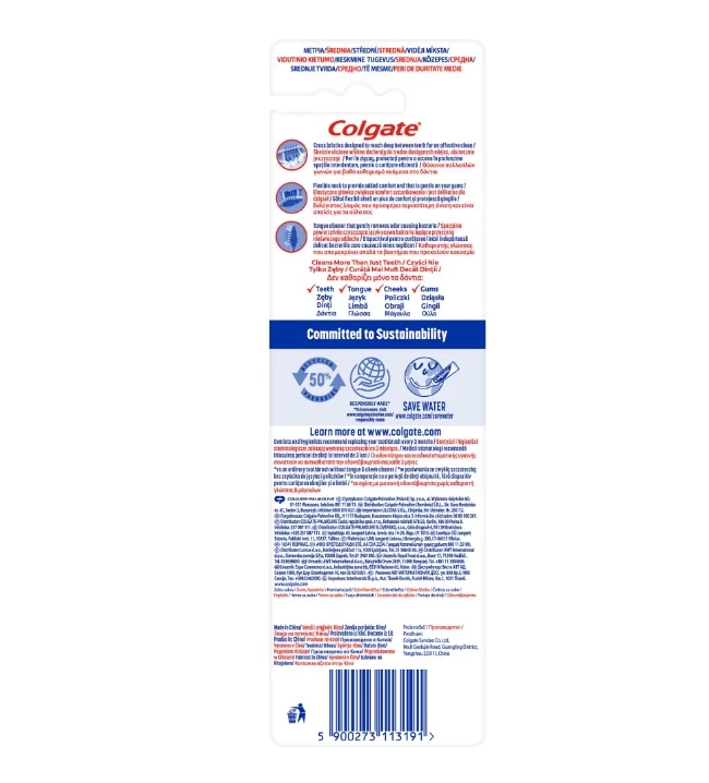 Periuta de dinti Colgate Zig Zag a fost conceputa pentru a oferi o curatare completa datorita periilor incrucisati care ajung adanc intre dinti, sporind sanatatea cavitatii orale. Periuta de dinti este potrivita pentru a curata dintii, limba, obrajii si gingiile. Periuta de dinti Colgate Zig Zag are, de asemenea, un maner flexibil pentru un confort sporit la periaj.