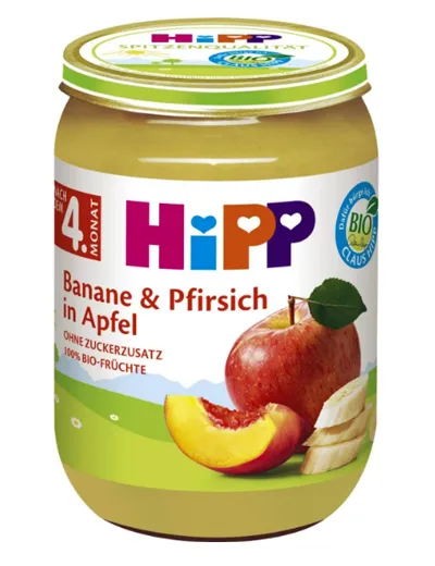 - HiPP Piure de fructe Banane Piersica Mar, de la 4 luni, 190g Bio