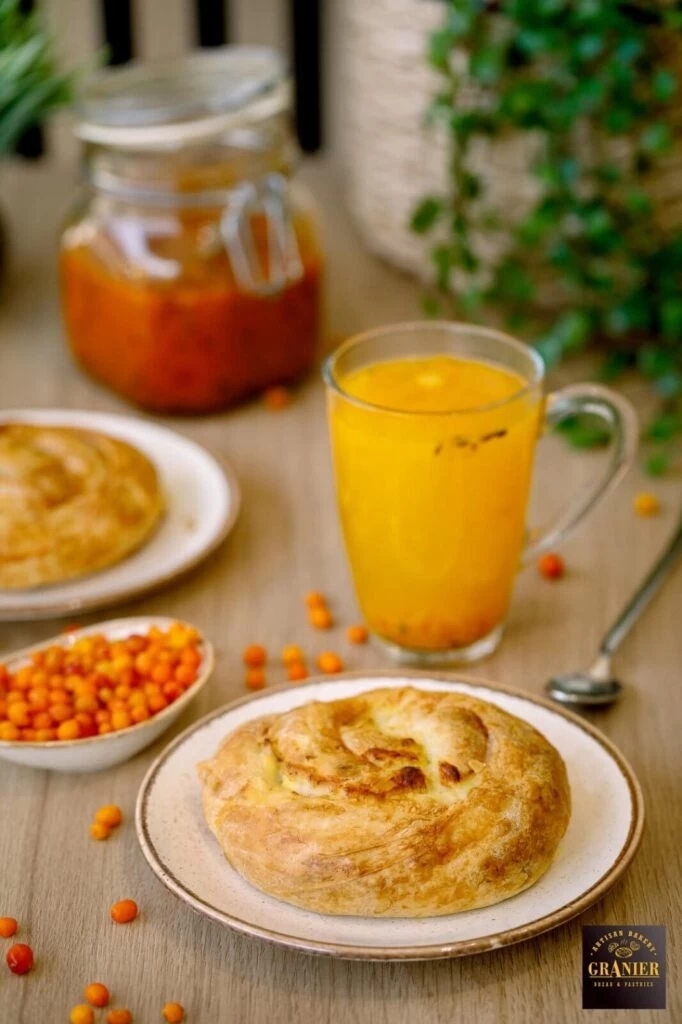 – Este preparată dintr-un aluat fără drojdie, cu multă umplutură;