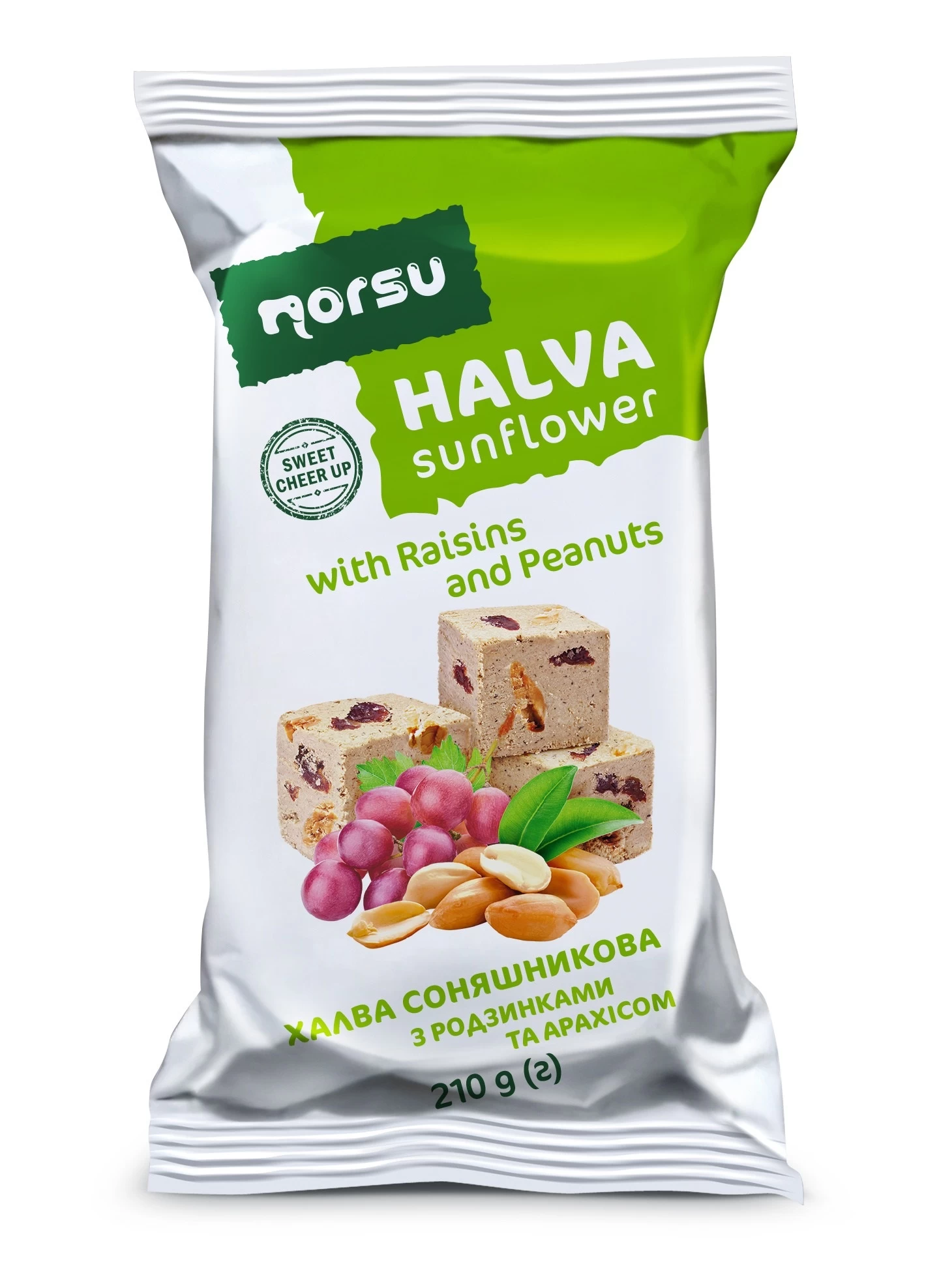 Насыщенный вкус подсолнечной халвы с изюмом и жареным арахисом (в упаковке).
