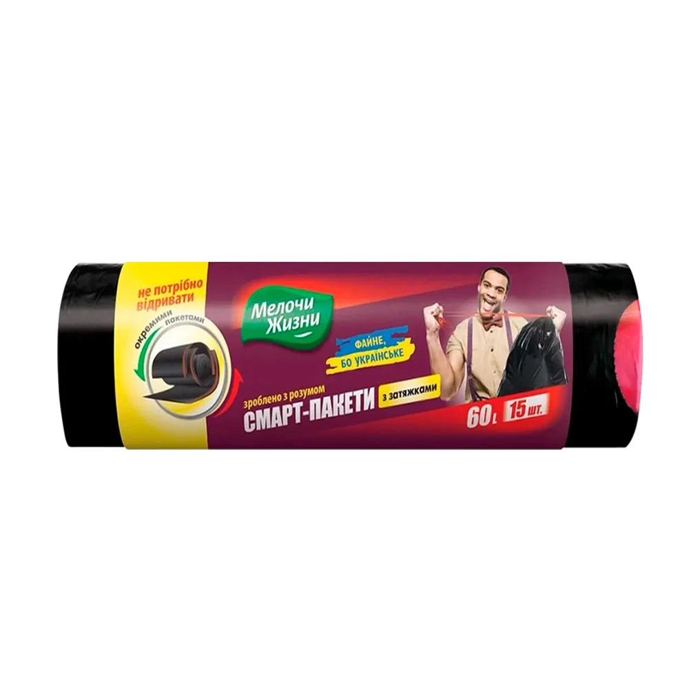 Saci de gunoi în Мелочи Жизни cu o clemă practică pentru pubele de până la 60 de litri.