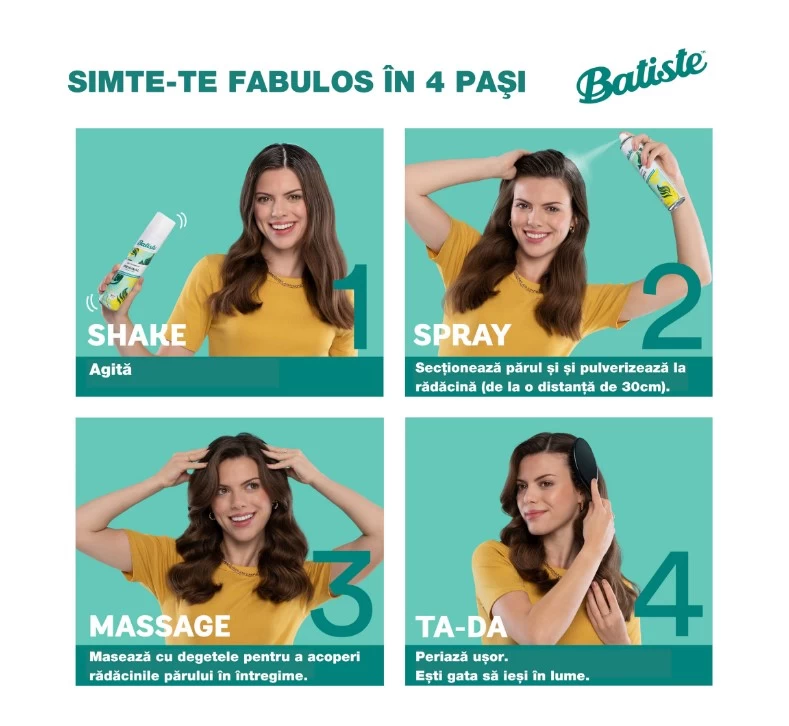 Indiferent de situatie, exista un Batiste creat pentru a combate radacinile uleioase, a revitaliza parul si a te face sa te simti libera. Improspatand radacinile, adaugand volum si textura pentru un look plin de farmec si incredere, suntem aici pentru a ne asigura ca fiecare zi este „a good hair day”.