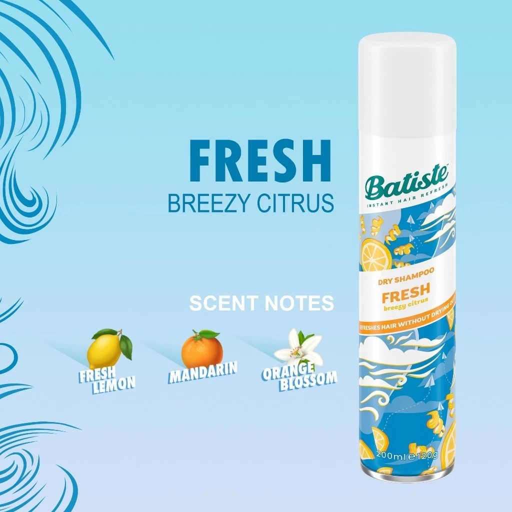 Șamponul uscat BATISTE Fresh cu un parfum răcoritor de 200 ml este un ajutor de urgență pentru părul tău. Acesta pune rapid în ordine firele, oferă strălucire sănătoasă, scapă de rădăcinile grase și curăță de impurități.