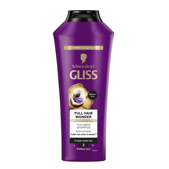 Gliss Full Hair Wonder este un șampon conceput pentru îngrijirea părului subțire, slăbit și predispus la căderea părului. Formula unică conține ingrediente active care refac structura părului, îi conferă densitate, volum și rezistență. Șamponul curăță delicat scalpul, îmbunătățește starea generală a părului și previne ruperea părului. Potrivit pentru utilizarea zilnică.
