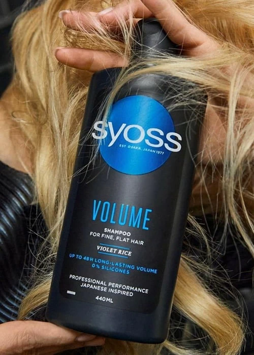 Șamponul SYOSS Volume Shampoo cu orez violet pentru părul fin fără volum, conferă volum părului fără a-l încărca.