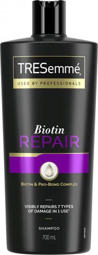 Șamponul Tresemme Repair and protect cu biotină și complex pro-bond, întărește fiecare fir de păr în interior și în exterior.