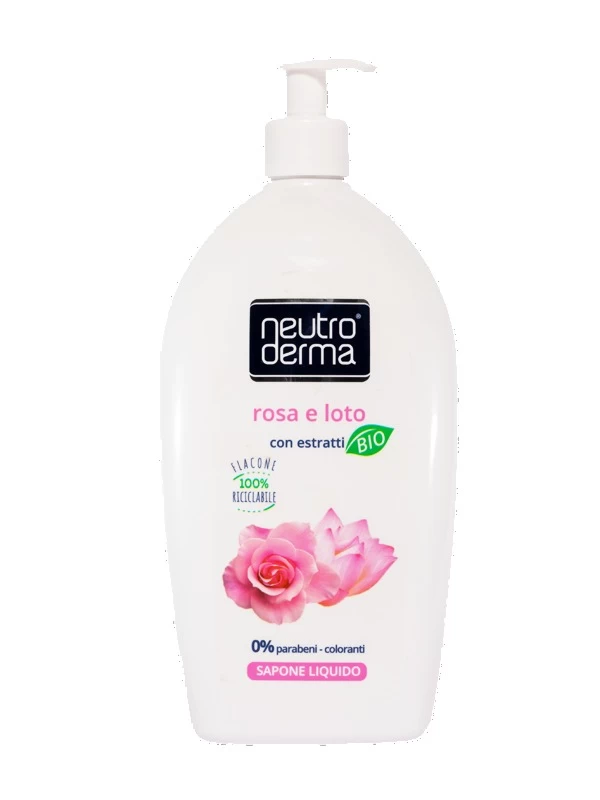 Săpunul lichid Neutroderma cu extracte organice respectă pH-ul fiziologic al pielii și este conceput pentru a curăța delicat mâinile și fața întregii familii. Potrivit chiar și pentru cele mai sensibile tenuri, datorită formulei sale delicate îmbogățite cu extract de trandafir organic, care are proprietăți calmante și emoliente.