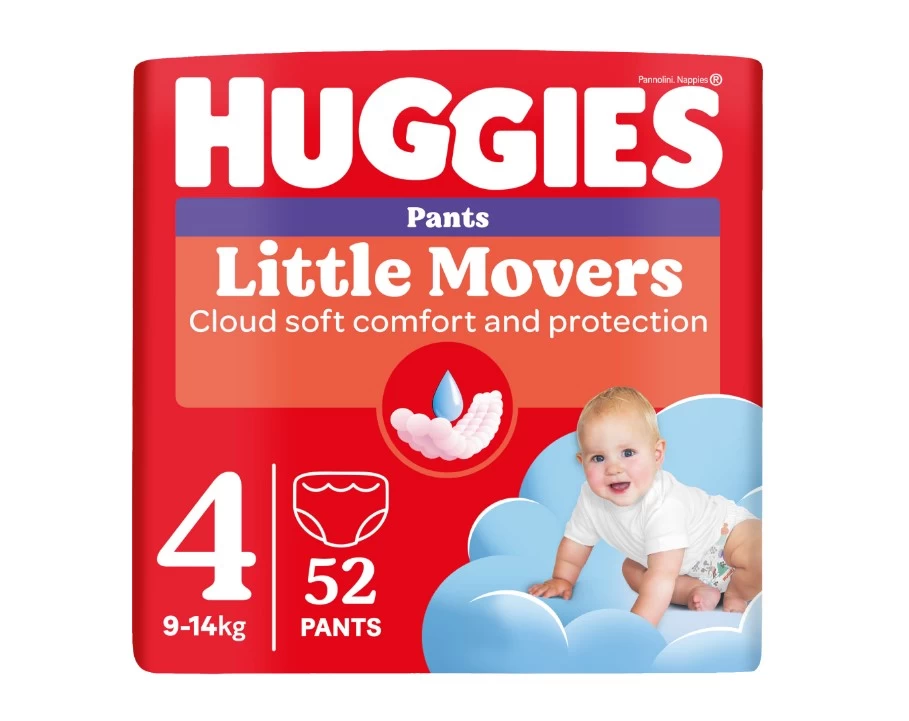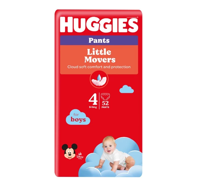 Huggies Little Movers Scutece chilotel №4, 9-14kg, pentru baietei 52 buc