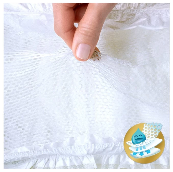 Pielea bebelusului tau se mentine uscata, datorita microperlelor absorbante care retin rapid umezeala.