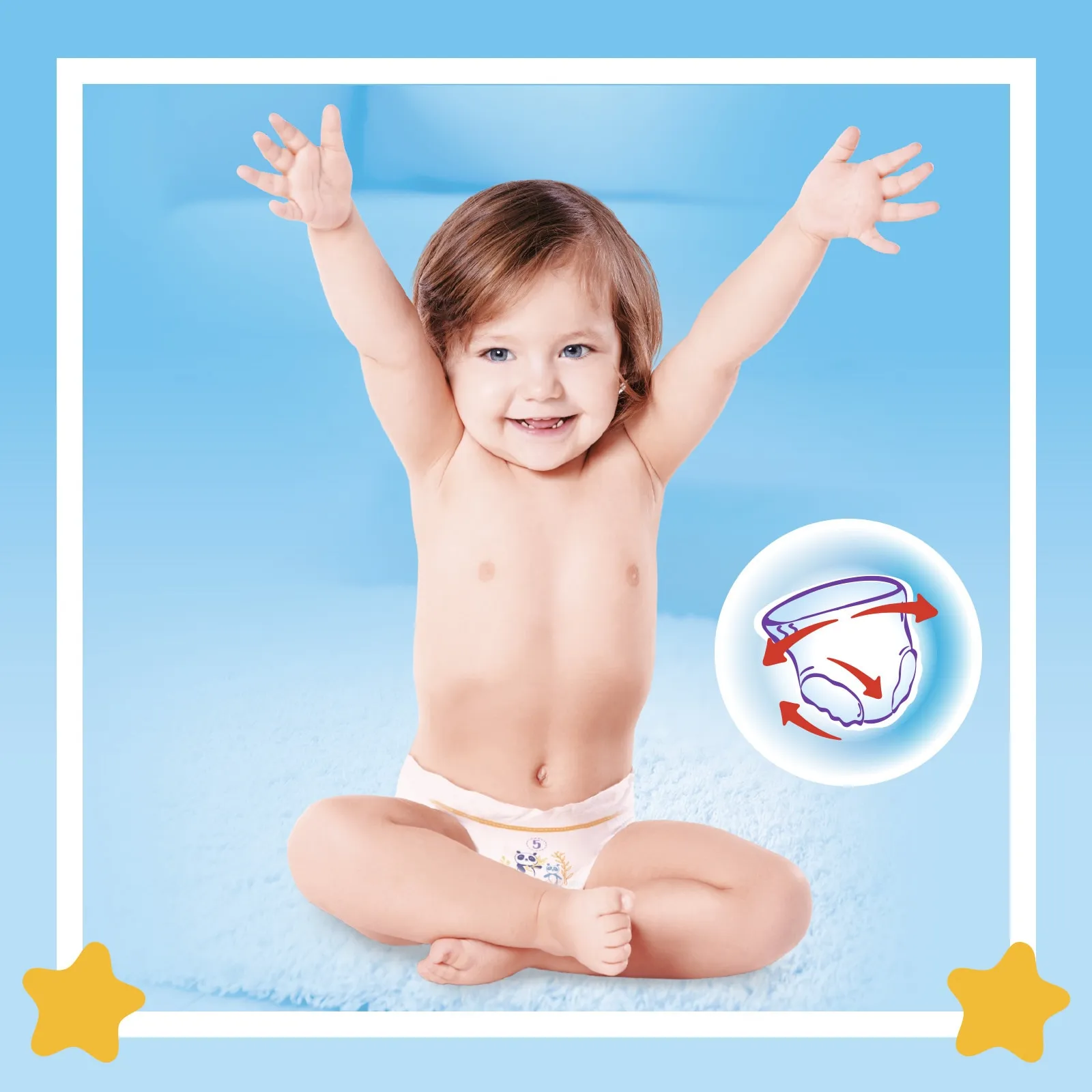 Datorită canalelor Dry-Way absorbția lichidului este de 3 ori mai rapidă * și oferă protecție împotriva scurgerilor de până la 12 ore, menținând astfel pielea bebelușului uscată și sănătoasă.