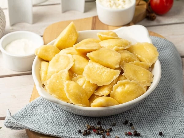gata. Scoateți pelimenii, adăugați unt topit şi serviți cu smântână.