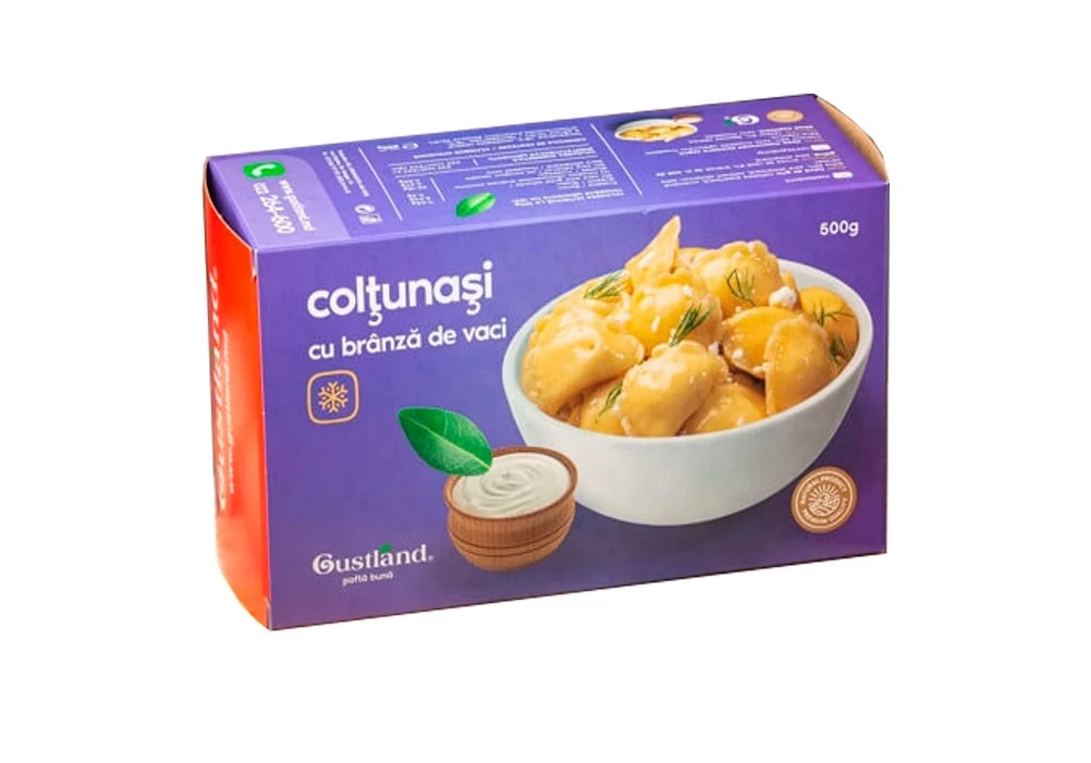 Umplutură 50%: brīnză de vaci cu fractia masică de grăsime 6% (lapte de vaca pasteurizat, culturi de bacterii acidolactice).