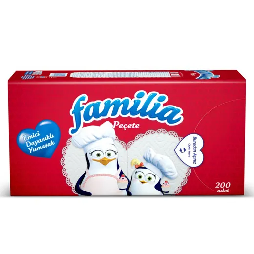 Șervețelele de hârtie cu un singur strat Familia sunt fabricate din celuloză naturală în relief și reprezintă un accesoriu excelent pentru orice masă festivă.