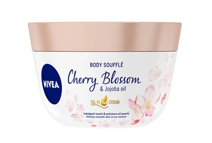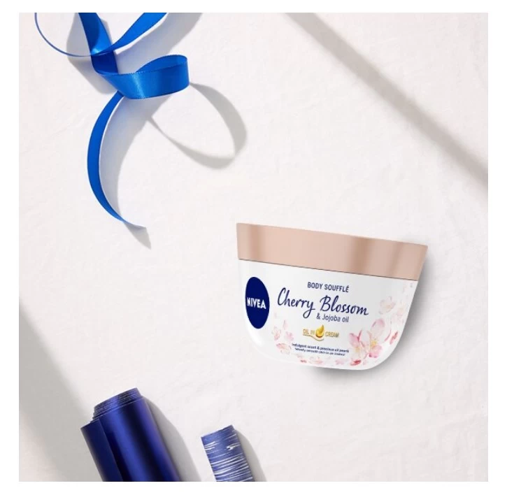 Cu souffle-ul de corp Nivea cu flori de cires si ulei de jojoba te poti bucura de o piele irezistibil de fina in fiecare zi. Perlele de ulei hidratant sunt infuzate intr-o crema cu formula usoara, imbogatita cu parfumul delicat al florilor de cires. Usor de aplicat, se absoarbe imediat in piele si ofera acea senzatie de ingrijire si catifelare.