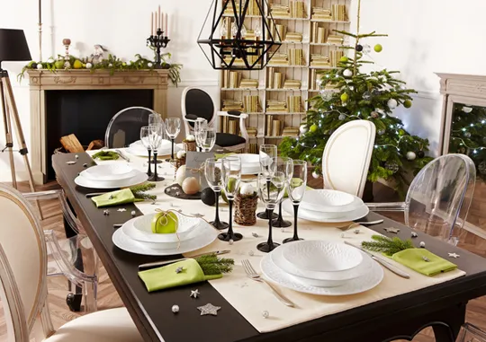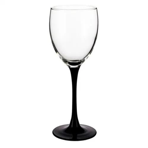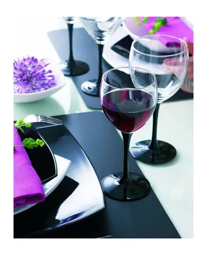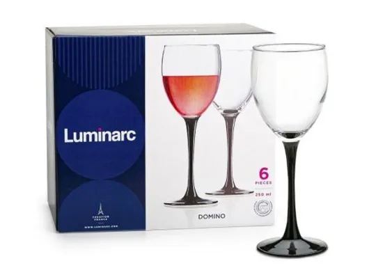 Paharele de vin Luminarc Domino sunt un exemplu de veselă în alb și negru. O cupă transparentă și o tijă neagră. De obicei sunt combinate cu veselă neagră sau albă într-o piesă de servire.